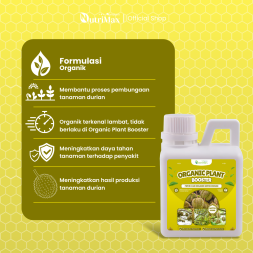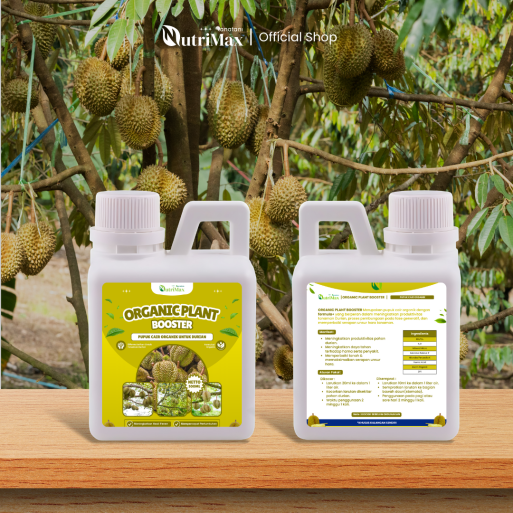 Organic Plant Booster Durian spesialis tanaman yang dapat membuat hasil durian lebih banyak dan besar, formula dari bahan organik yang aman dan ramah lingkungan, membuat tanaman lebih tahan terhadap serangan penyakit, serta dapat meningkatkan hasil panen.